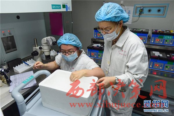 3月20日,廣醫(yī)三院胚胎實(shí)驗(yàn)室人員杜紅姿(右)和陳仕萍核對從冷凍庫里提取的胚胎。