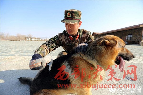 隨著天氣轉(zhuǎn)暖,警犬開始換毛,訓(xùn)導(dǎo)員每天要給警犬梳毛。