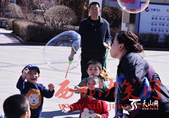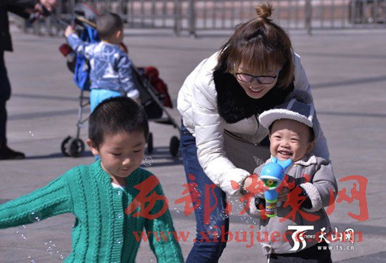 3月29日,烏魯木齊市天氣晴朗,天空一片湛藍(lán),很多市民都走出家門享受春天的陽光,不少孩子在人民廣場上追逐、奔跑、吹泡泡、放風(fēng)箏,玩得不亦樂乎。當(dāng)日,烏魯木齊市最高氣溫達(dá)到14攝氏度,市民已經(jīng)脫下了厚厚的棉衣,穿上了春裝。