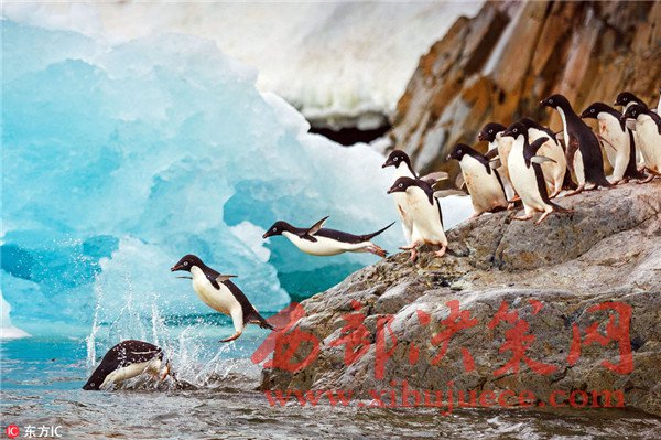 攝影師兼導(dǎo)游DaveMerron在南冰洋帶隊(duì)旅游時(shí)邂逅一群重返海洋的企鵝,這群可愛(ài)的小家伙排著隊(duì)站在巖石上,一個(gè)接一個(gè)跳進(jìn)海洋“泡澡”,不遠(yuǎn)處的冰山掩映著它們張開(kāi)小短翅膀起飛的身影,畫面十分美好。