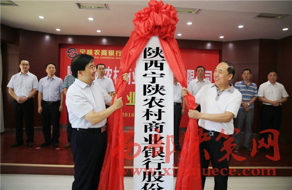 省聯(lián)社副主任文瑞盈、寧陜縣人民政府縣長鄭紅丹為寧陜農(nóng)商銀行開業(yè)揭牌