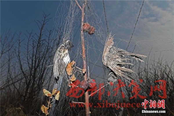 2月14日,山西太原郊區(qū)的一間果園內(nèi),為了保護農(nóng)作物的果農(nóng)搭建了捕鳥網(wǎng),三百余只不同種類的鳥被網(wǎng)圍困致死,有些已腐爛風(fēng)干。
