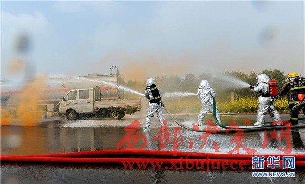 當(dāng)日,山東省菏澤市消防、交通等部門為有效應(yīng)對?;返缆愤\輸突發(fā)事件,提高應(yīng)急救援和協(xié)調(diào)能力,聯(lián)合開展?;愤\輸企業(yè)事故應(yīng)急救援演練,出動消防、救護等車輛10余臺,近百人參加演練。