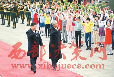 會(huì)談前,習(xí)近平在人民大會(huì)堂東門(mén)外廣場(chǎng)為吳廷覺(jué)舉行歡迎儀式。習(xí)近平主席夫人彭麗媛、全國(guó)人大常委會(huì)副委員長(zhǎng)嚴(yán)雋琪、國(guó)務(wù)委員楊潔篪、全國(guó)政協(xié)副主席王家瑞等出席。
