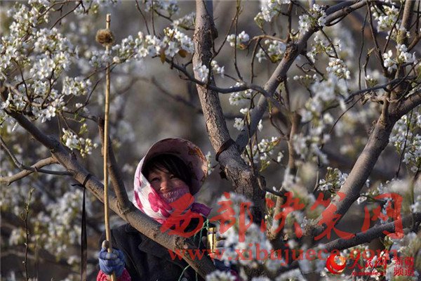 新疆庫爾勒梨花艷 果農(nóng)授粉保豐收