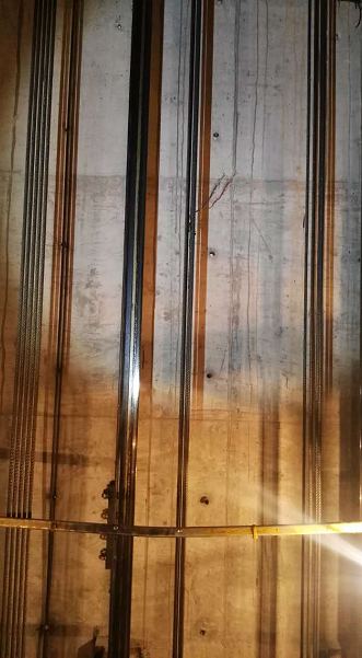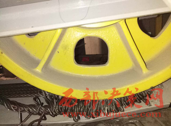 4月14日,西部大開發(fā)工作人員來到凱躍歐洲城,見到凱躍物業(yè)的尹經(jīng)理,說明來意后,尹經(jīng)理說,6號樓確實有五部電梯,其中有三部電梯在每月的電梯安檢時發(fā)現(xiàn)鋼絲繩有安全隱患,其中一部電梯鋼絲部分開叉,已經(jīng)絞到滑輪下面,如果繼續(xù)使用,會有安全問題。所以物業(yè)公司3月份就找到寶雞市特種設(shè)備檢驗所(以下簡稱特檢所),要求現(xiàn)場檢查電梯到底是否能安全,能否繼續(xù)使用。