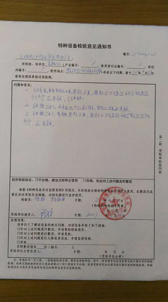 經(jīng)過特檢所現(xiàn)場檢驗,發(fā)現(xiàn)三部電梯鋼絲繩磨損嚴重,6號樓2單元中梯、北梯鋼絲均出現(xiàn)斷股,現(xiàn)場建議更換鋼絲繩,后出具特種設(shè)備檢驗意見通知書,對于檢查出的問題要求立即停止使用。