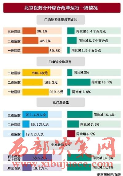 北京市衛(wèi)計委稱,監(jiān)測結(jié)果顯示,各醫(yī)療機構(gòu)藥占比和藥費均呈下降趨勢。