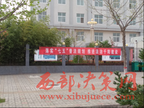 在城關(guān)鎮(zhèn)新民村、段坊村、縣西新社區(qū)及東海路等區(qū)域,更新法治宣傳噴繪40幅,200平方米;更換道旗86面。在縣、鎮(zhèn)、村法治文化廣場更換宣傳欄版面 40 個,利用全縣70輛出租車車載LED顯示屏進行法治宣傳,在縣城主要街道路口懸掛法治宣傳橫幅24條。組織全縣各單位、各商戶通過室外LED顯示屏不間斷滾動播放“深入開展“七五”普法,建設幸福新千陽”、“創(chuàng)建“法治千陽”,構(gòu)建和諧社會”等宣傳標語。