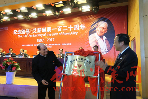 蘭州城市學院黨委書記閻曉輝致辭指出,路易▪艾黎是一個偉大的名字,路易?艾黎精神是一面?zhèn)ゴ蟮钠鞄?。長期以來,蘭州城市學院堅持弘揚路易▪艾黎精神,以他倡導的“手腦并用、創(chuàng)造分析”為校訓,按照“突出服務(wù)城市功能、優(yōu)化教師教育結(jié)構(gòu)、強化應(yīng)用能力培養(yǎng)”的辦學指導思想,不斷優(yōu)化學科結(jié)構(gòu),適時調(diào)整專業(yè)設(shè)置,科學構(gòu)建課程體系,推進教育教學改革,經(jīng)過堅持不懈地建設(shè),發(fā)展成為甘肅省應(yīng)用型人才培養(yǎng)的基地、職業(yè)教育和基礎(chǔ)教育師資的搖籃、城鎮(zhèn)化發(fā)展研究的中心、科技創(chuàng)新與社會服務(wù)的平臺、文化傳承創(chuàng)新的陣地。在紀念路易▪艾黎誕辰120周年的日子里,蘭州城市學院全體師生更加緬懷艾黎先生的偉業(yè)風范、高風亮節(jié),學校將在甘肅省委省政府的堅強領(lǐng)導下,在路易▪艾黎精神的引領(lǐng)下,在各級領(lǐng)導的關(guān)懷和支持下,不斷加快向應(yīng)用型大學轉(zhuǎn)型步伐,為地方經(jīng)濟社會發(fā)展做出新的更大貢獻。