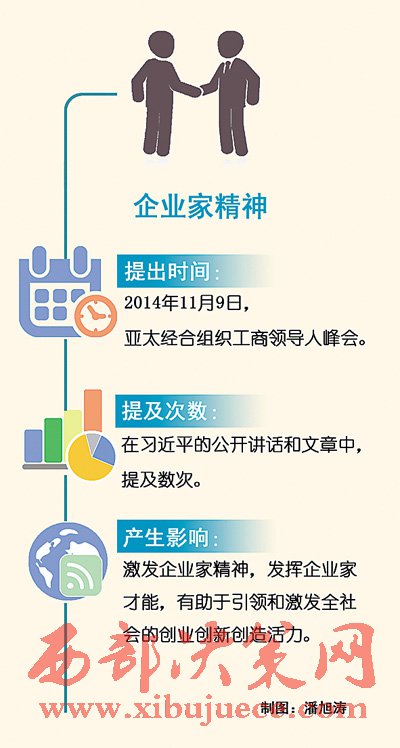 “我們全面深化改革,就要激發(fā)市場蘊藏的活力。市場活力來自于人,特別是來自于企業(yè)家,來自于企業(yè)家精神。”2014年11月9日,在亞太經合組織工商領導人峰會上,面對來自數十個國家和地區(qū)的1500多位工商界代表,國家主席習近平特別提及了企業(yè)家精神。