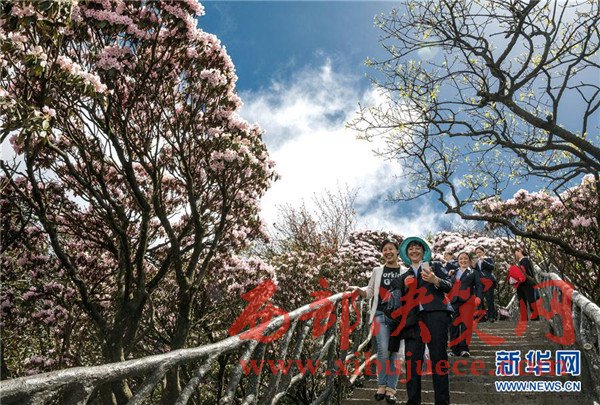 近期,國家級(jí)風(fēng)景名勝區(qū)重慶金佛山的杜鵑花競(jìng)相盛開,吸引眾多游客前往觀賞。