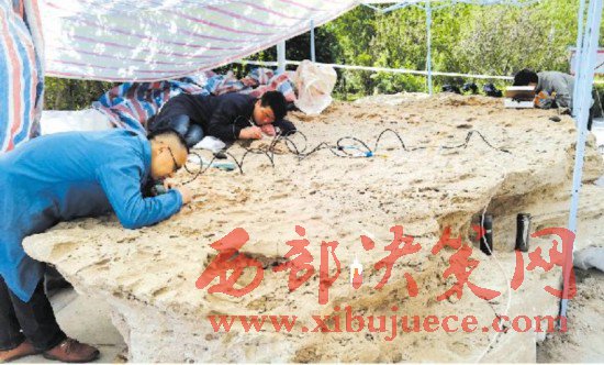 據(jù)介紹,這塊化石長(zhǎng)6米、寬4米、厚1米,面積20多平方米,重達(dá)16噸,保存了超過200件翼龍骨骼化石。由于化石最富集的一層已被風(fēng)化破壞所剩不多,如完全保存下來,至少有上千件翼龍骨骼,堪稱哈密翼龍之巢。因此,中科院古脊椎所哈密科考隊(duì)長(zhǎng)汪筱林將其命名為“翼之巢”。