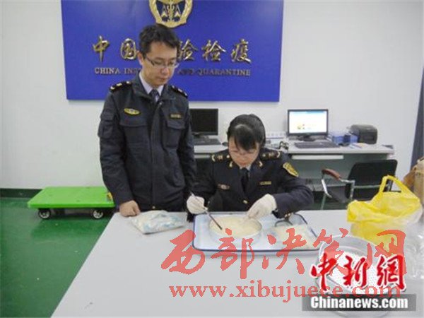 圖為寧波郵路口岸截獲進(jìn)境帶活蟲大米檢驗(yàn)檢疫現(xiàn)場。