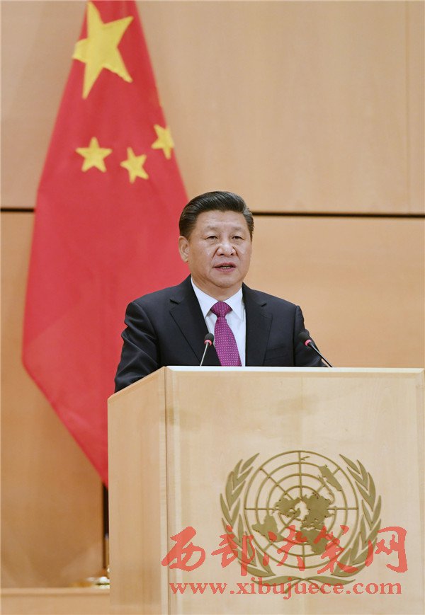 2017年1月18日,國(guó)家主席習(xí)近平在瑞士日內(nèi)瓦萬(wàn)國(guó)宮出席“共商共筑人類命運(yùn)共同體”高級(jí)別會(huì)議,并發(fā)表題為《共同構(gòu)建人類命運(yùn)共同體》的主旨演講。(記者 饒愛民 攝)