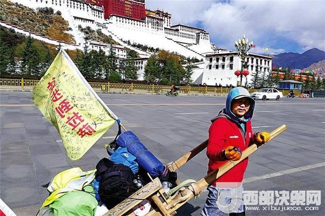 經過119天的漫長跋涉,從短袖到棉衣,從酷暑到嚴寒,他用腳板丈量路程。當他站在雄偉的布達拉宮前,瞬間感覺到“自己的人生完滿了”。