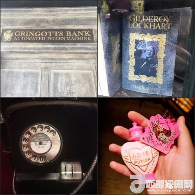 左下:電話亭里的魔法部 電話號(hào)碼;韋斯萊魔法笑料店的愛情魔藥