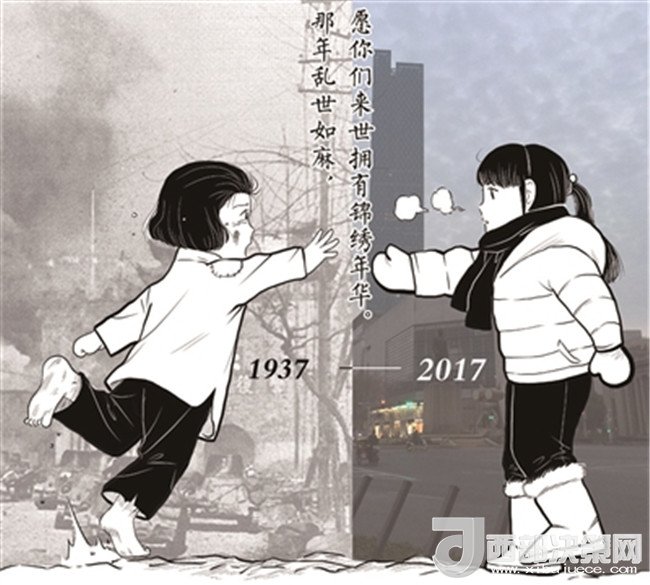 “那年亂世如麻,愿你們來世擁有錦繡年華”。昨日,這句話被許多網友轉發(fā)提及,這句話來自于一張漫畫圖,圖中兩名分別來自1937年和2017年的女孩隔空相對,一人身邊戰(zhàn)火紛飛,一人身處和平現(xiàn)代。這幅圖的作者朱彥告訴記者,該圖創(chuàng)作于去年12月,今年有網友把原圖中的2016年換成了2017年,之所以想要畫這張圖,是因為想讓大家不要忘記這段歷史,而網友的大量關注在他們意料之外,“說明我們想表達的情緒網友感受到了。”