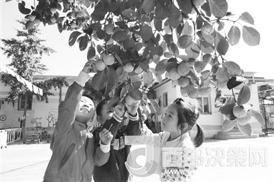 我們幼兒園面積大、歷史久,更可貴的是園中百余棵大樹郁郁蔥蔥。這里春日桃李芬芳,夏日楊柳依依,秋日石榴掛滿枝頭,冬日白雪落在柿子上,一處處皆是風(fēng)景。記得南京師范大學(xué)虞永平教授來我園參觀后,對冬季掛在樹上紅彤彤的柿子特別感興趣,覺得這是北方特有的景色,便問道:“柿子樹有幾種???分別什么時候長果?果實什么時間可以摘呢?”說起來慚愧,雖然園中的柿子樹伴隨我從青蔥歲月到不惑年華,我卻不曾認真仔細地觀察過這柿子樹,只是記得后勤老師一直念叨:“柿子樹寓意事事平安,是北方人對平安、幸福美好日子的一種期待。”