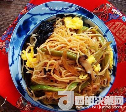 主料:細(xì)面條500克、輔料:豆角300克、木耳4朵、香菇4朵、大蔥1段、銀耳半朵、雞蛋2個(gè)、五花肉150克、醬油5勺、老抽1小勺、甜面醬3勺、鹽7克。