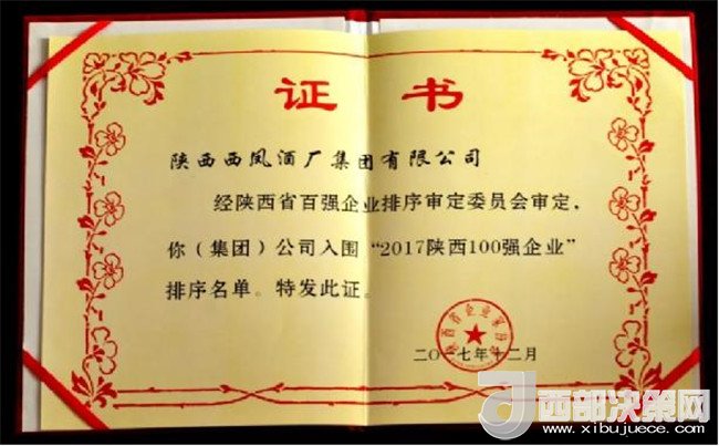 西部決策網(wǎng)-西部大開發(fā)訊(韓宗憲)近日,“陜西百?gòu)?qiáng)企業(yè)”發(fā)布會(huì)在西安禹龍國(guó)際酒店隆重舉行。會(huì)上,陜西西鳳酒廠集團(tuán)公司再次蟬聯(lián)“2017陜西企業(yè)100強(qiáng)”光榮稱號(hào),西鳳公司副總經(jīng)理高洪濤代表企業(yè)領(lǐng)取了榮譽(yù)證書和獎(jiǎng)牌。