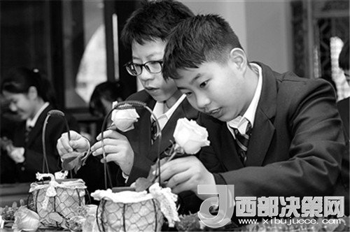 2017年12月18日,杭州新世紀外國語學(xué)校學(xué)生在學(xué)習(xí)插花。該校位于浙江杭州最老的城區(qū)——上城區(qū),該區(qū)匯集了眾多南宋文化遺跡,學(xué)校設(shè)立國學(xué)館“六藝閣”,推出“新六藝”(茶藝、園藝、棋藝、書藝、樂藝、手藝)課程,來自與“新六藝”有關(guān)的專業(yè)人士和從業(yè)家長成為課程教師。學(xué)生在為期一周的學(xué)習(xí)過程中通過親身體驗,了解南宋文化經(jīng)典和人文記憶,積淀人文底蘊,提升核心素養(yǎng),增強文化自信。(記者 鮑效農(nóng) 攝)