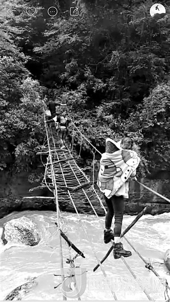 現(xiàn)在,村里24歲的彝族小伙兒拉博已經(jīng)成為首批網(wǎng)紅之一。2016年11月19日,垂直距離約800米、總共約1000級臺階的懸崖村鋼梯工程竣工。拉博就是鋼梯施工隊的一員,在山崖最陡峭的一段,他親手打下了固定的鋼釘。鋼梯完工后,拉博特意去“跑”了一遍,從山頂?shù)缴侥_僅耗時18分鐘,而這段路普通人可能需要一個半小時。從小放羊的拉博習(xí)慣了在山間奔跑跳躍,爬天梯、過吊橋、放牛羊這些生活日常,在5個月的時間里為他帶來了12.6萬的粉絲。