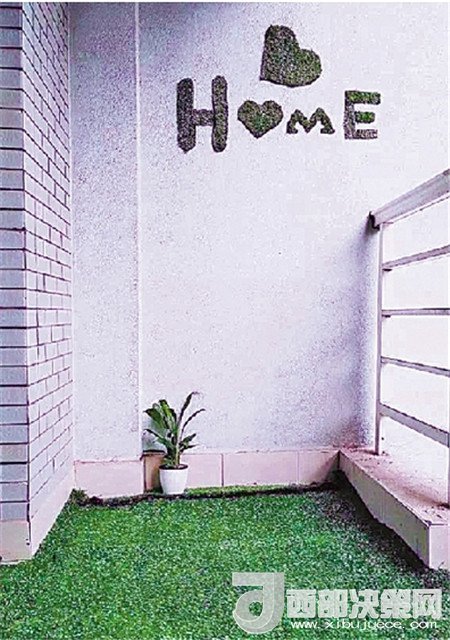 要說最有特色的,就是寢室陽臺上設(shè)置了“高爾夫草坪”。青綠色的草皮地板,柔軟清新,別具一格。