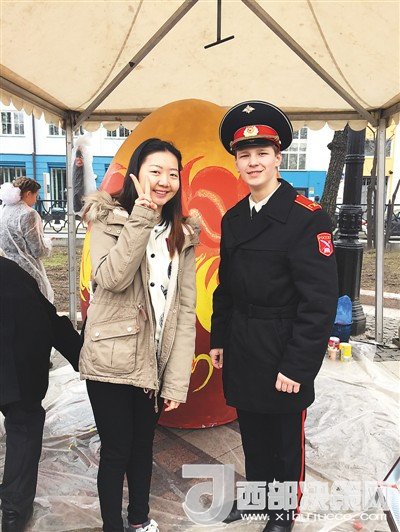 在俄羅斯的節(jié)日慶典活動(dòng)中,姜若晨(左一)與當(dāng)?shù)剀娦W(xué)生的合影。在她看來,學(xué)子與外國朋友的交往過程中要注重自身形象,傳遞中國微笑。