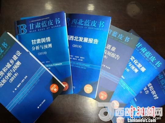 圖為2018年度《甘肅藍(lán)皮書》和《西北藍(lán)皮書》相關(guān)成果。馮志軍攝