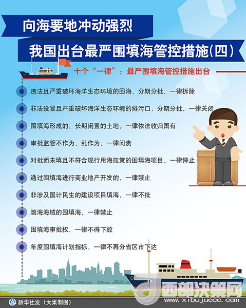 ?。保啡?,國家海洋局舉行圍填海情況新聞發(fā)布會,國家海洋局副局長林山青宣布,結(jié)合圍填海督察整改工作,國家海洋局將采取“史上最嚴(yán)圍填海管控措施”,以期保護(hù)優(yōu)先、集約利用的用海理念牢固確立,使海域開發(fā)利用得到可持續(xù)發(fā)展。
