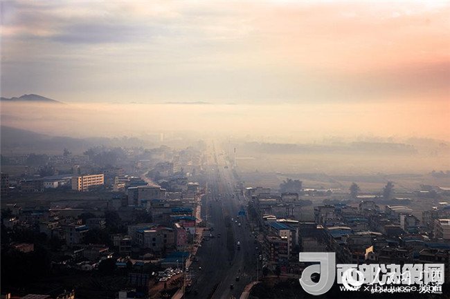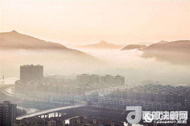 1月18日電1月18日,廣西上思縣城出現(xiàn)了平流霧奇觀,在朝陽(yáng)渲染下的金黃色霧氣在低空緩緩地流動(dòng),樓房在霧氣中若隱若現(xiàn),宛若仙境。
