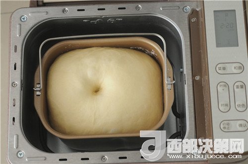 4.程序結(jié)束,面團發(fā)酵好了,用手在中間撮個洞,不回縮不塌陷,剛剛好