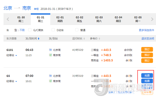 攜程平臺搶票截圖