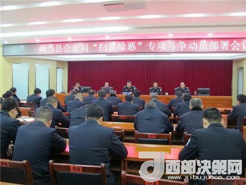 西部決策網(wǎng)-西部大開發(fā)訊(帥華鋒 通訊員 馬存福 楊建設(shè))為認(rèn)真貫徹落實(shí)黨中央、國務(wù)院關(guān)于“掃黑除惡”專項(xiàng)斗爭的決策部署和上級公安機(jī)關(guān)具體部署要求,堅(jiān)決打贏掃黑除惡攻堅(jiān)戰(zhàn),進(jìn)一步鞏固全縣安全穩(wěn)定的大好局面。2月8日下午,兩當(dāng)縣公安局召開“掃黑除惡”專項(xiàng)斗爭動員部署會。縣政府黨組成員、公安局黨委書記、局長李斌出席會議并作動員部署。局領(lǐng)導(dǎo)班子成員、城區(qū)各警種全體民警參加會議,會議由政委范文明主持。