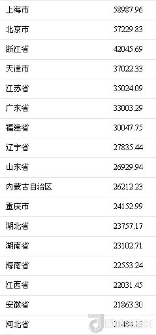 記者梳理發(fā)現(xiàn),上海、北京、浙江、天津、江蘇、廣東、福建、遼寧、山東、內(nèi)蒙古2017年居民人均可支配收入超過(guò)了全國(guó)平均水平。