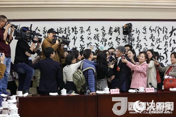 楊偉民接受記者“圍堵”采訪(fǎng)。(中國(guó)經(jīng)濟(jì)周刊記者肖翊攝)