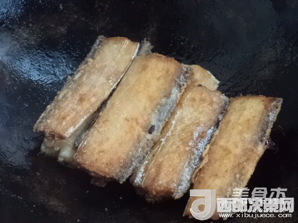 7.煎好的帶魚入鍋