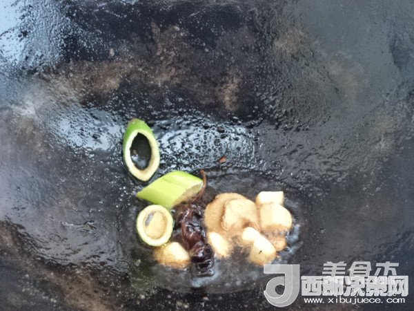 6.再起油鍋,大料入鍋炸香后,姜、蒜、蔥入鍋煸香