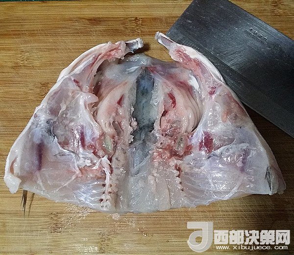 3.處理魚時注意將貼在魚肚子及魚頭里的黑膜全部撕掉并清洗干凈,要不吃起來會有很重的“魚腥味和土腥味”,然后瀝干水分后用刀將魚頭小心地劈開但不要劈斷、用蔥姜、料酒腌制半小時左右,可進一步去腥增味