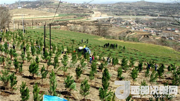 一番火熱的勞動,放眼望去:明媚的春光里,連片的樹苗錯落有致、迎風(fēng)挺立、綻放生機,“阿陽大地又增添了一抹新綠”。