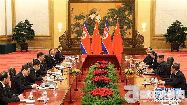 在會談中,習(xí)近平代表中共中央對金正恩首次訪問中國表示熱烈歡迎。習(xí)近平表示,你在中共十九大后電賀我再次當(dāng)選中共中央總書記、就任黨中央軍委主席,前些天又第一時間電賀我再次當(dāng)選國家主席、國家中央軍委主席,我對此表示感謝。此次來華訪問,時機(jī)特殊、意義重大,充分體現(xiàn)了委員長同志和朝黨中央對中朝兩黨兩國關(guān)系的高度重視,我們對此高度評價。