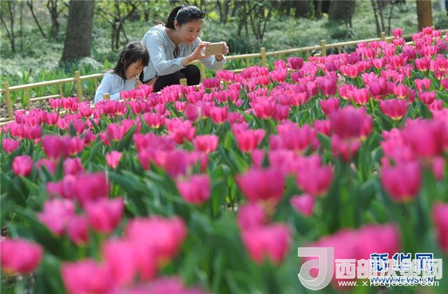 3月28日,游客在四川省成都市新都區(qū)漫花莊園踏春賞花。(杜炳勛 攝)