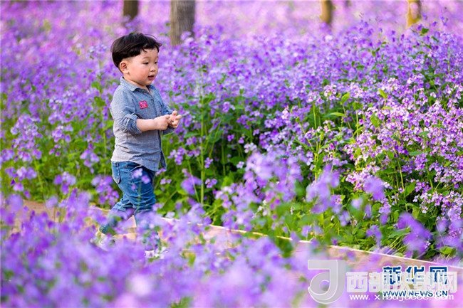 3月28日,一名小朋友在南京科技館濕地公園盛開(kāi)的二月蘭花叢間玩耍。春暖花開(kāi)的季節(jié),人們紛紛走出家門、來(lái)到戶外,盡享爛漫春光。 (蘇陽(yáng) 攝)