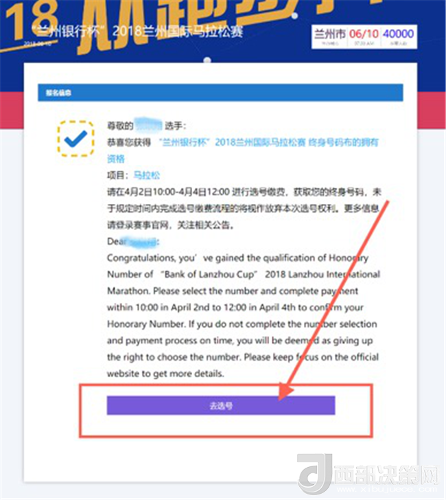 西部決策網—西部大開發(fā)訊(杜杰 帥華鋒)“蘭州銀行杯”2018蘭州國際馬拉松賽預報名工作已于3月25日15:00截止,現(xiàn)已全面進入資質審核階段,在所有成功預報名的選手中,終身號碼(含歷屆與2018新進)擁有者可于4月3日10:00-4月5日12:00通過官網完成自主選號并繳費;馬拉松項目直通選手(不含組委會特邀及專業(yè)運動員,詳見官網報名須知)也可于4月6日10:00-4月8日12:00完成自主選號并繳費。具體規(guī)則及流程如下: