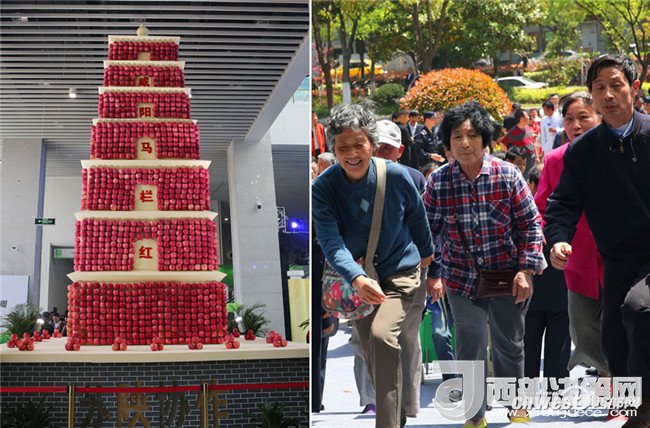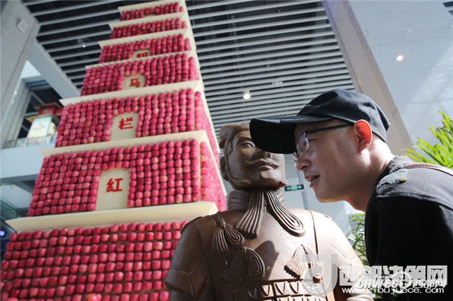 展館里3000多個陜西大蘋果堆出的大雁塔格外醒目,兵馬俑機器人作為陜西蘋果宣傳大使,能回答觀眾提出的各種問題,尤其是陜西蘋果方面的問題,沒有它回答不出來的。