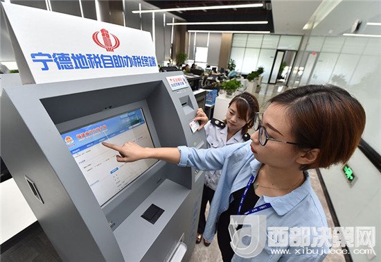 寧德時代新能源科技有限公司的員工在辦稅員的指導(dǎo)下試用自助辦稅終端(2017年10月12日攝)。新華社記者 宋為偉 攝