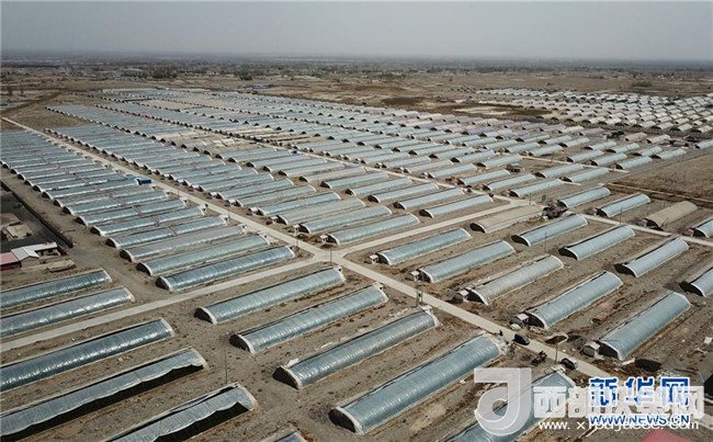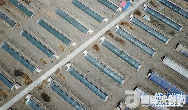 這是已經(jīng)投入使用的甘肅省酒泉市肅州區(qū)總寨戈壁農(nóng)業(yè)產(chǎn)業(yè)園的高效節(jié)水日光溫室(4月18日攝)。