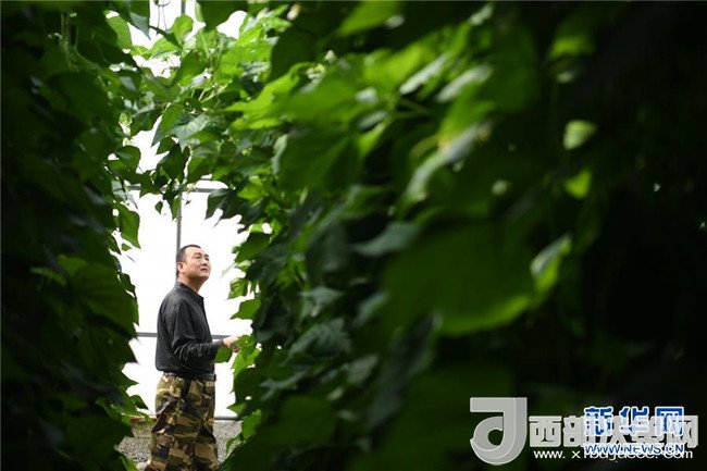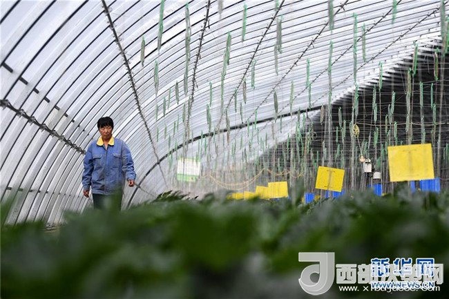 4月18日,甘肅省酒泉市肅州區(qū)總寨鎮(zhèn)總寨村村民范立德在戈壁農(nóng)業(yè)產(chǎn)業(yè)園的日光溫室內(nèi)查看蔬菜生長情況。