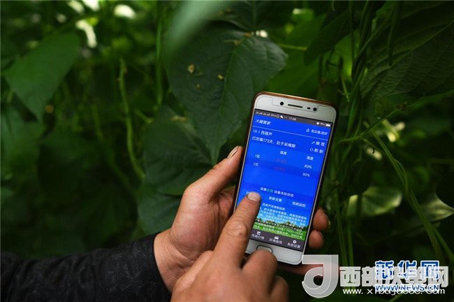 4月18日,甘肅省酒泉市肅州區(qū)總寨鎮(zhèn)總寨村村民范立德使用手機(jī)查看日光溫室的實時數(shù)據(jù)。